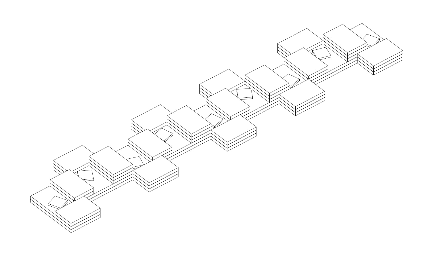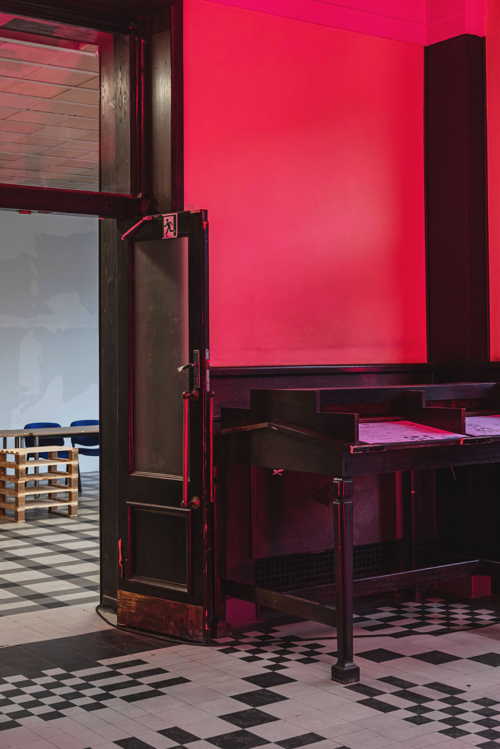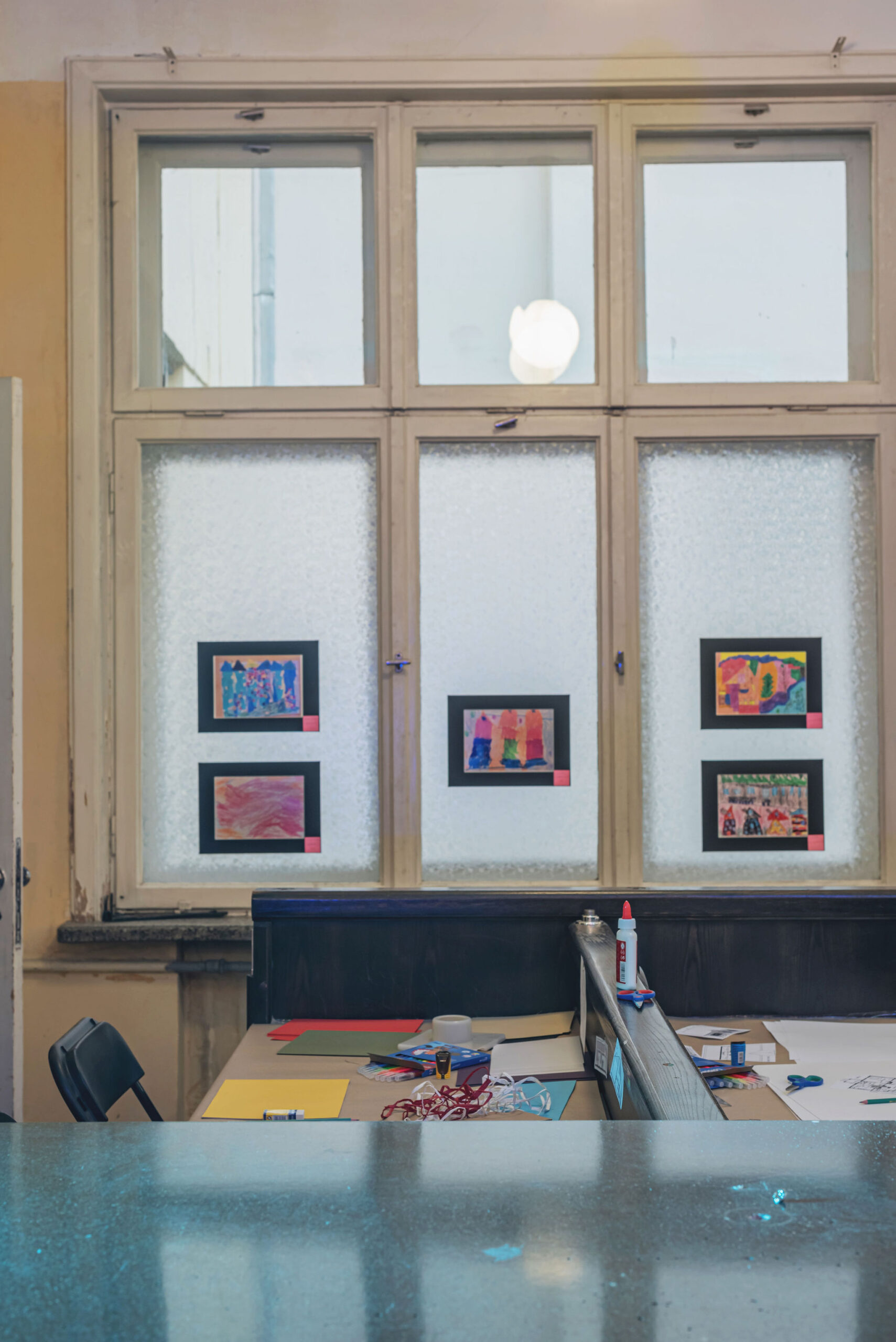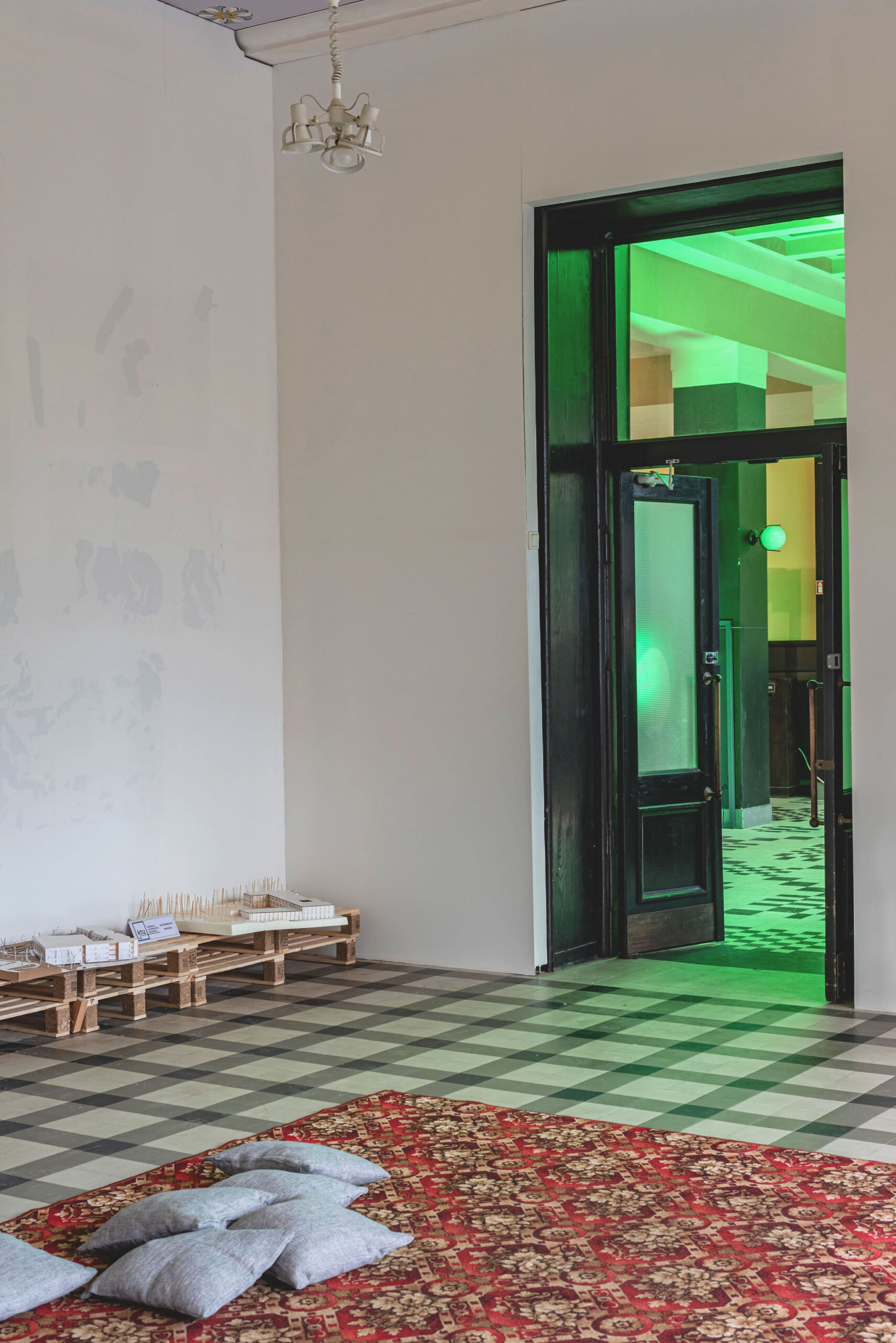 The festival took place in the former Central Kaunas Post Office building, a significant architectural heritage site. The exhibition and educational zones were arranged on the ground floor of the building, primarily in the main operations hall. The basis of the exhibition design consisted of reused wooden pallets, from which a long structure of varying heights was formed. This structure was used to display the children’s models and drawings.