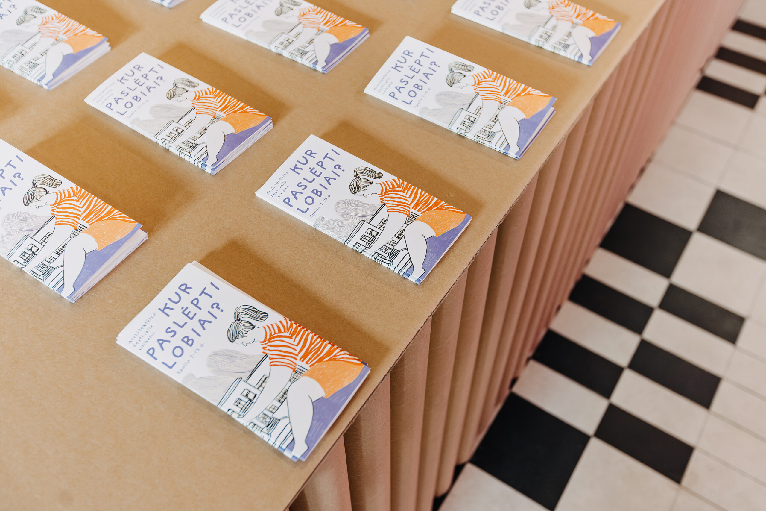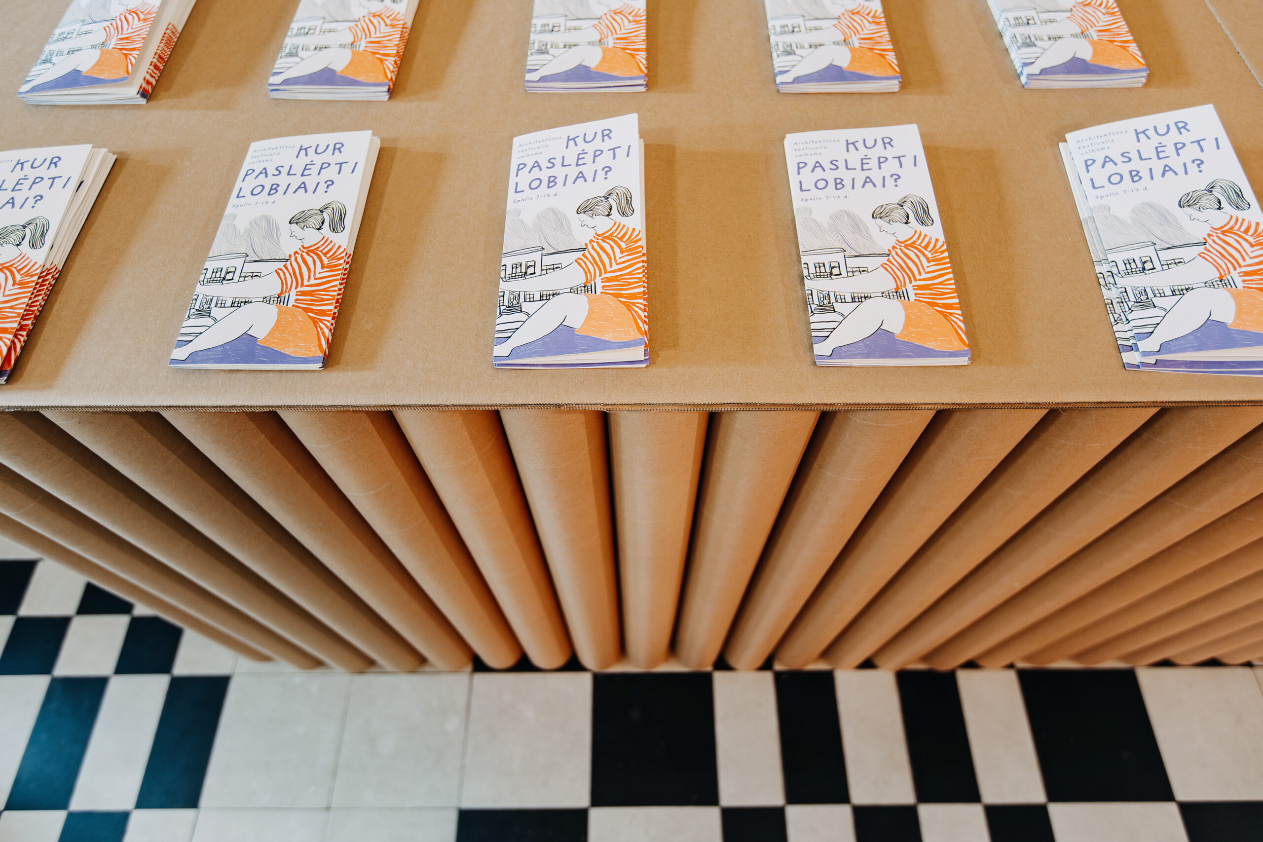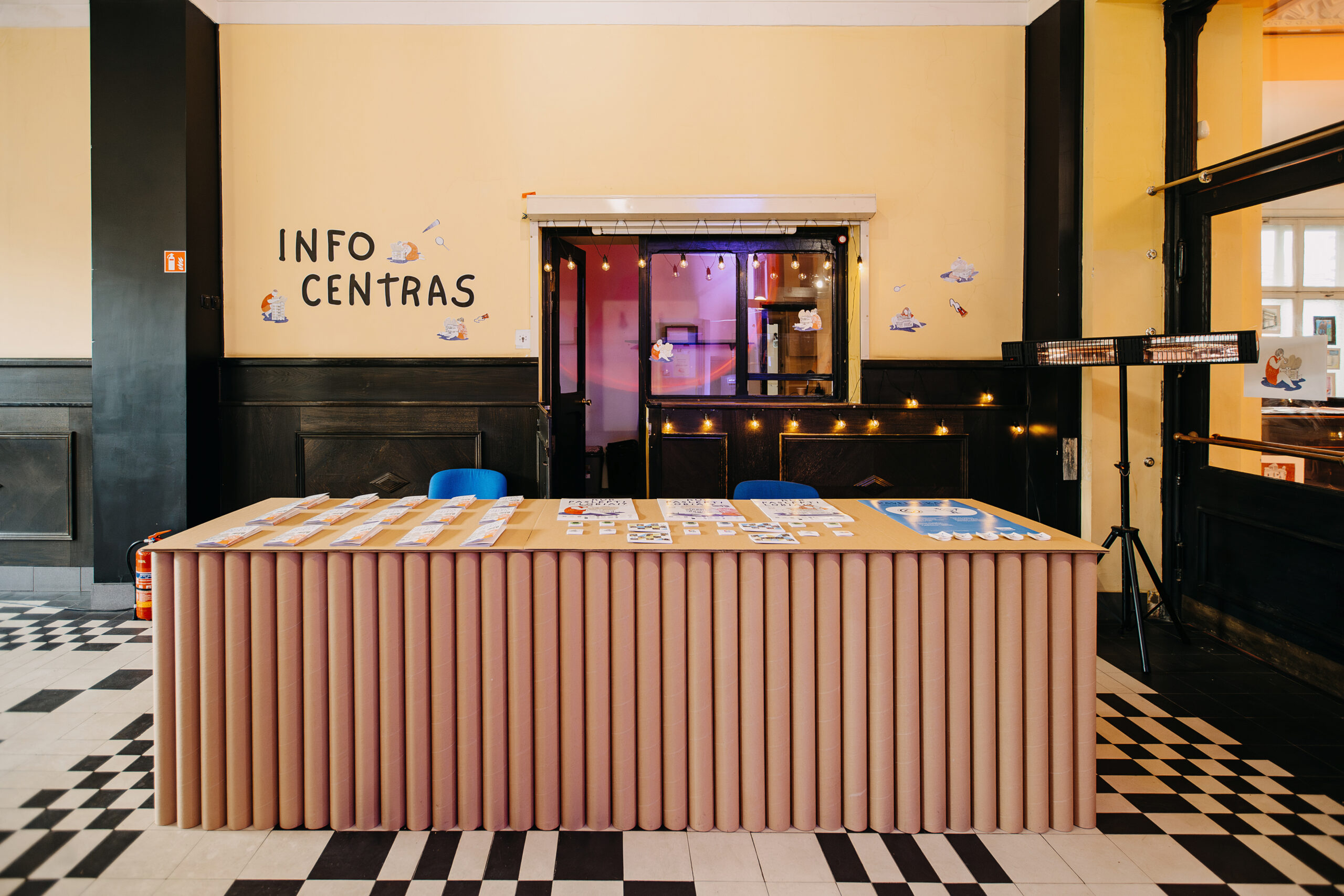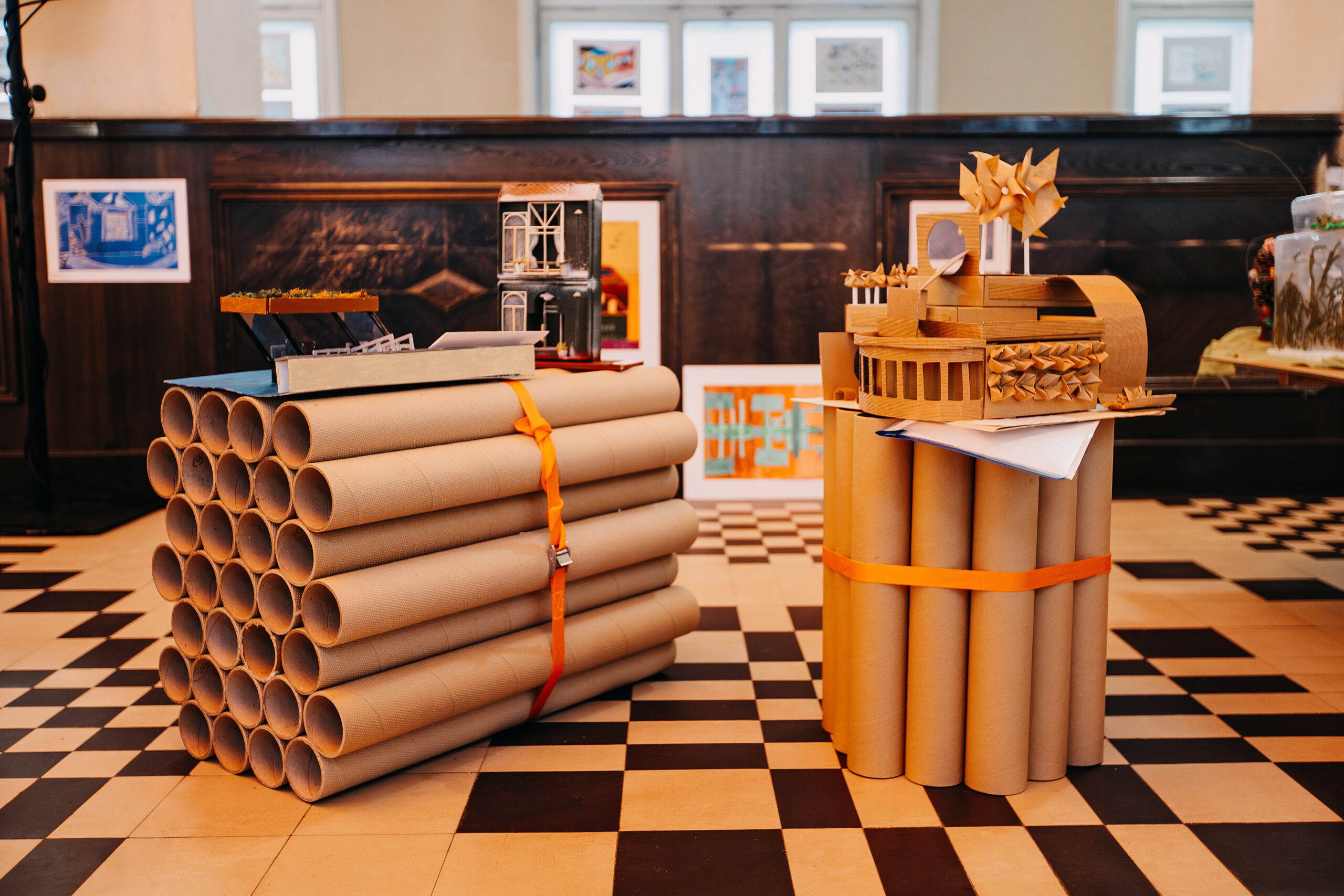This time, the exhibition design was based on reused and new cardboard tubes and wooden battens, from which various structures were formed for displaying the works. Also, for the first time in the festival, the idea of an info center was tested. The info center was made from vertically arranged cardboard tubes and was used to sell architecture-related books and children’s literature.